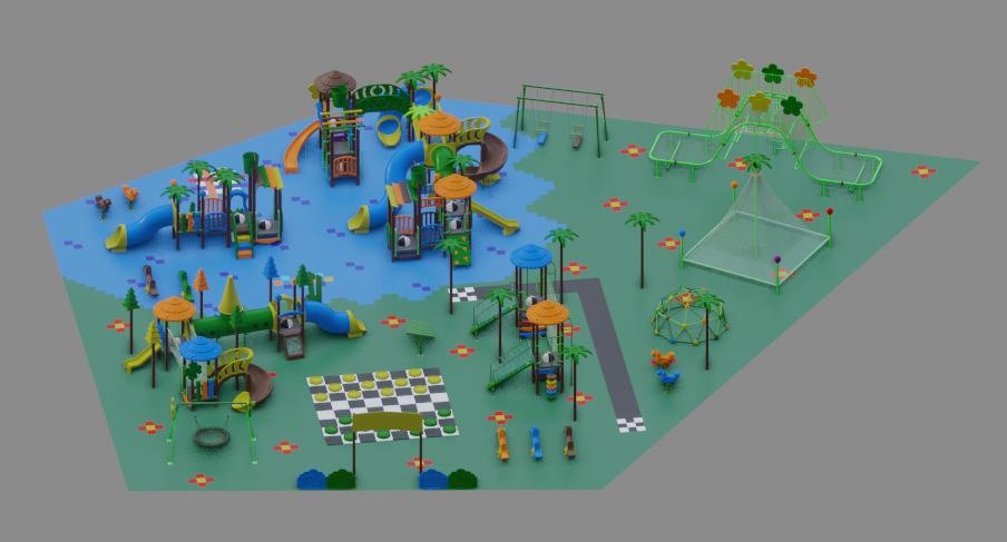 A estrutura será instalada na área próxima às piscinas externas, em substituição aos brinquedos existentes, degastados pelo uso. O novo parquinho ocupará uma área total de 800m² e contará com brinquedos tradicionais, como gangorra, balanço e escorregador, na chamada área seca. A grande novidade será a área molhada, com uma série de brinquedos com água que farão a alegria das crianças nos dias mais quentes, incluindo baldes malucos, tobogã e tapete com chafariz.